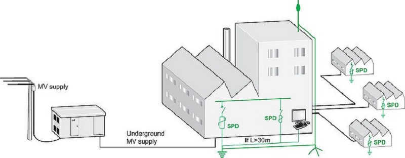 Hệ thống chống sét trực tiếp & lan truyền.->Hệ thống chống sét trực tiếp gồm cột Franklin, kim thu sét ESE và DAS, có nhiệm vụ đánh chặn và dẫn dòng điện sét xuống đất an toàn, bảo vệ công trình và con người. Cấu tạo chính gồm kim thu sét, dây thoát sét và hệ thống tiếp địa giúp tiêu tán dòng điện nhanh chóng. Song song đó, hệ thống chống sét lan truyền (SPD) bảo vệ thiết bị điện tử trước tình trạng quá áp do sét lan truyền qua đường dây điện, tín hiệu hoặc viễn thông. SPD thường được lắp tại tủ điện chính, tủ điện hạ thế hoặc ngay gần thiết bị nhạy cảm để giảm nguy cơ hư hỏng. Việc kết hợp đồng bộ cả chống sét trực tiếp và chống sét lan truyền mang lại giải pháp an toàn toàn diện, hạn chế rủi ro cháy nổ, bảo vệ con người, tài sản và thiết bị điện.
